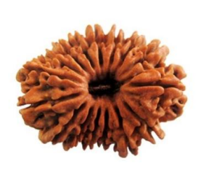 14 ముఖి రుద్రాక్షను దైవ రత్నం (దేవ్ మణి) అని కూడా అంటారు. ఈ రుద్రాక్ష స్వయంగా ఈ పూసను ధరించిన శివుని కళ్ళ నుండి నేరుగా వచ్చినదిగా పరిగణించబడుతుంది. ఈ రుద్రాక్ష రెండు కనుబొమ్మల మధ్య ఉన్న అజ్ఞా చక్రాన్ని సక్రియం చేస్తుంది, తద్వారా ధరించినవారికి సామర్థ్యం ఇస్తుంది